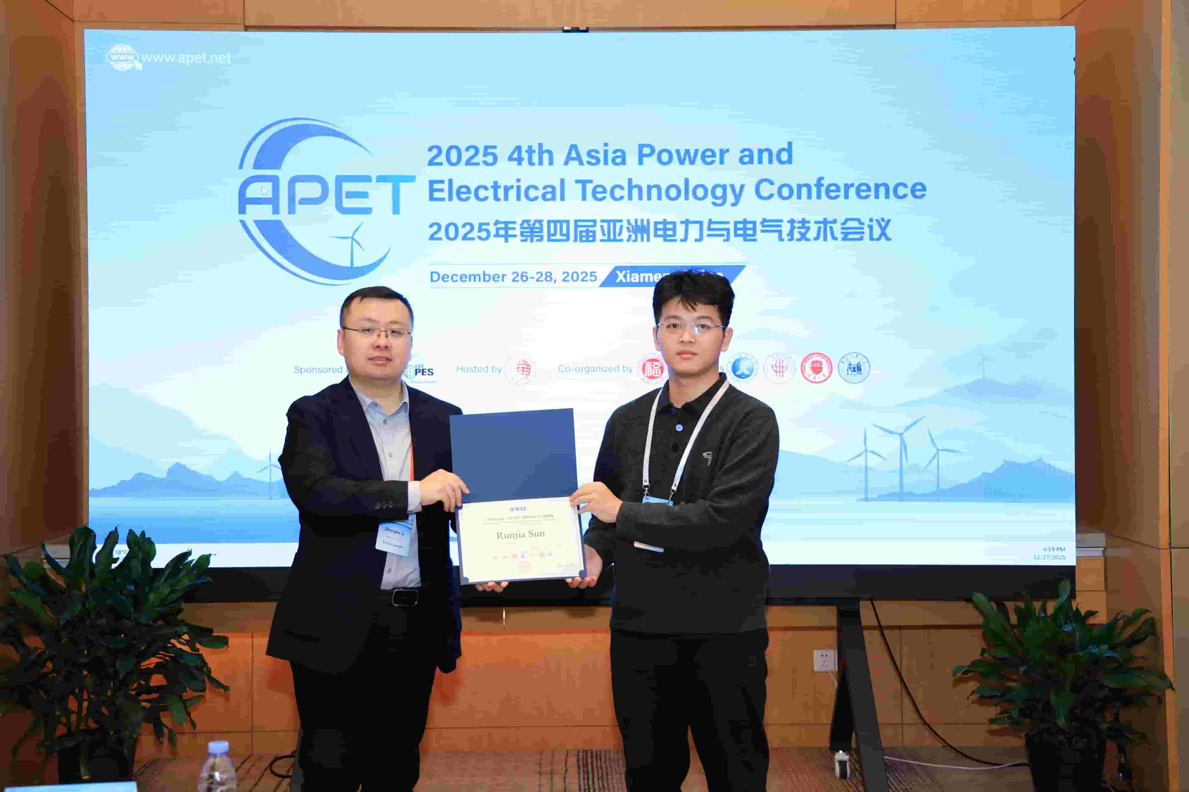 12月26至28日,2025年第四届亚洲电力与电气技术会议(2025 4th Asia Power and Electrical Technology Conference,APET 2025)在中国厦门举行,会议由华侨大学主办,福州大学协办,福建理工大学、东华大学、 天津大学、河北工业大学等国内高校机构支持。